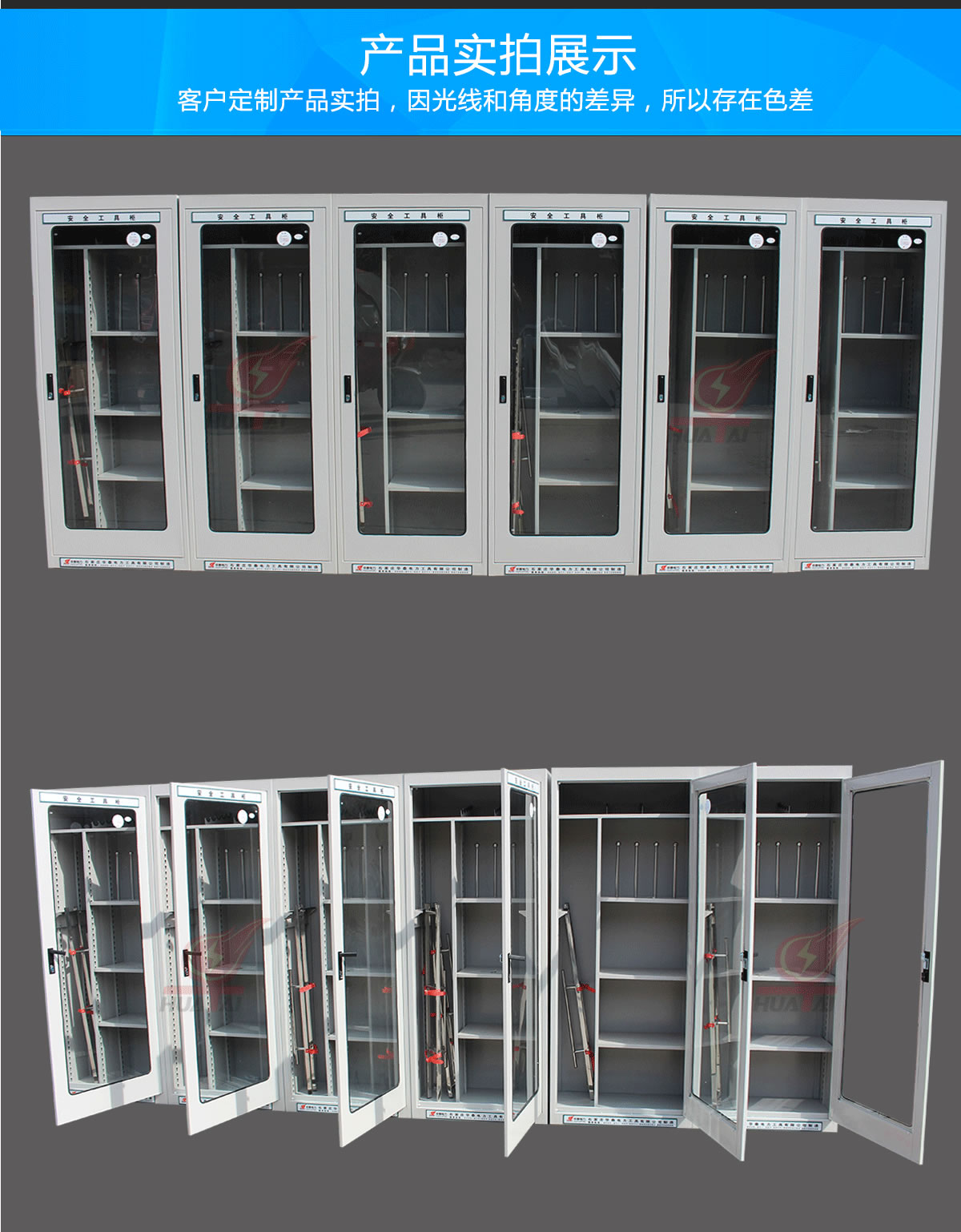 在國內電力行業中,廣泛使用絕緣工具進行帶電作業或操作,受潮后的絕緣性能下降,嚴重危及檢修人員的生命安全,現有的措施是采用木質或鐵質的柜體或絕緣工具庫房保管。木質、鐵質工具柜都不具備長期恒定的防潮作用,極易受潮,難以適應絕緣工具的存放要求。絕緣工具庫房是將絕緣工具存放在一個獨立的庫房內,通過加溫去濕,使其干燥。使用時再從庫房提取,這樣不僅投資太大,能耗高、煩躁過程緩慢,特別是絕緣工具太少的單位,沒有必要建立絕緣工具庫房,所以研發了一種電力安全工具柜。本公司依靠多年來的生產安全工器具的技術經驗,開發除了自動調控的智能安全工具柜。發揮專業優勢,安全工器具與安全工具合理結合,配套供應,根據安全工器具品種、規格、數量、優化分類,個性化設計,量身打造,有效保證了安全可靠性集防潮、防塵、防損方串套,整齊美觀于一體,深受廣大用戶好評。助您進一步提升電力安全管理水平