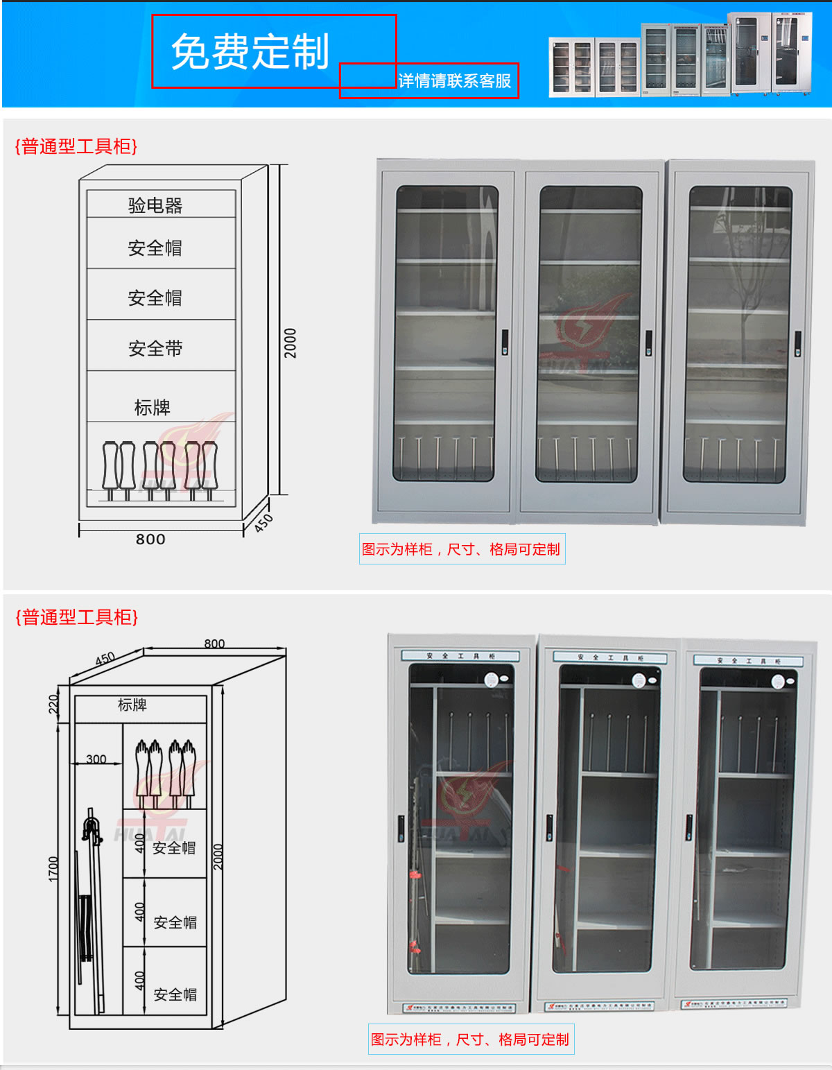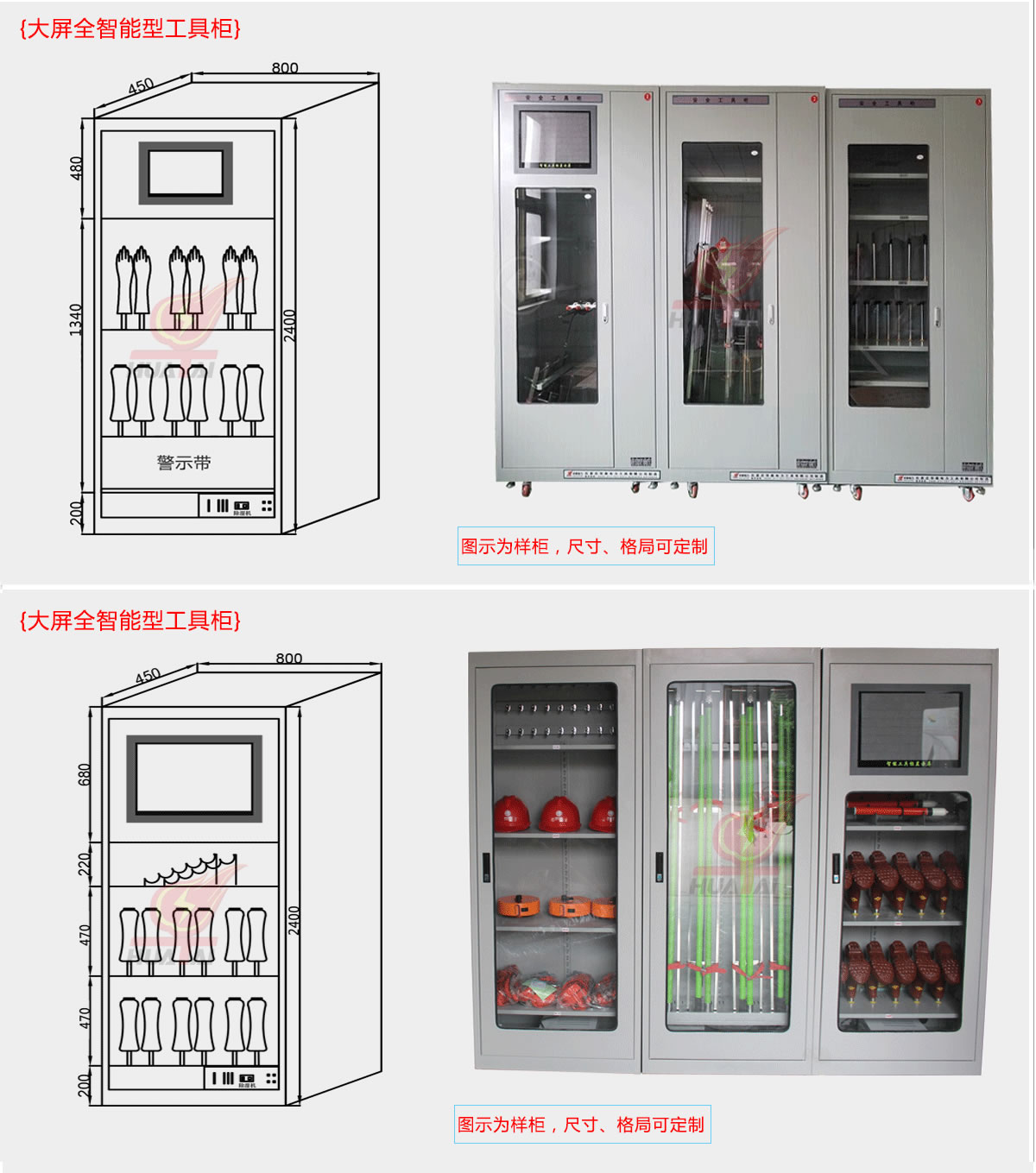 我公司生產的普通型安全工具柜、智能安全工具柜、全智能安全工具柜。經國家電網公司武漢高壓研究所檢驗合格,達到DL/T874-2005《帶電作業用工具庫房》國家標準和Q/RN04-2006《電力安全工具柜》企業標準,于2007年通過河北省科學技術廳組織的科技成果鑒定,已投入批量生產。并可以量身定做、設計圖紙。