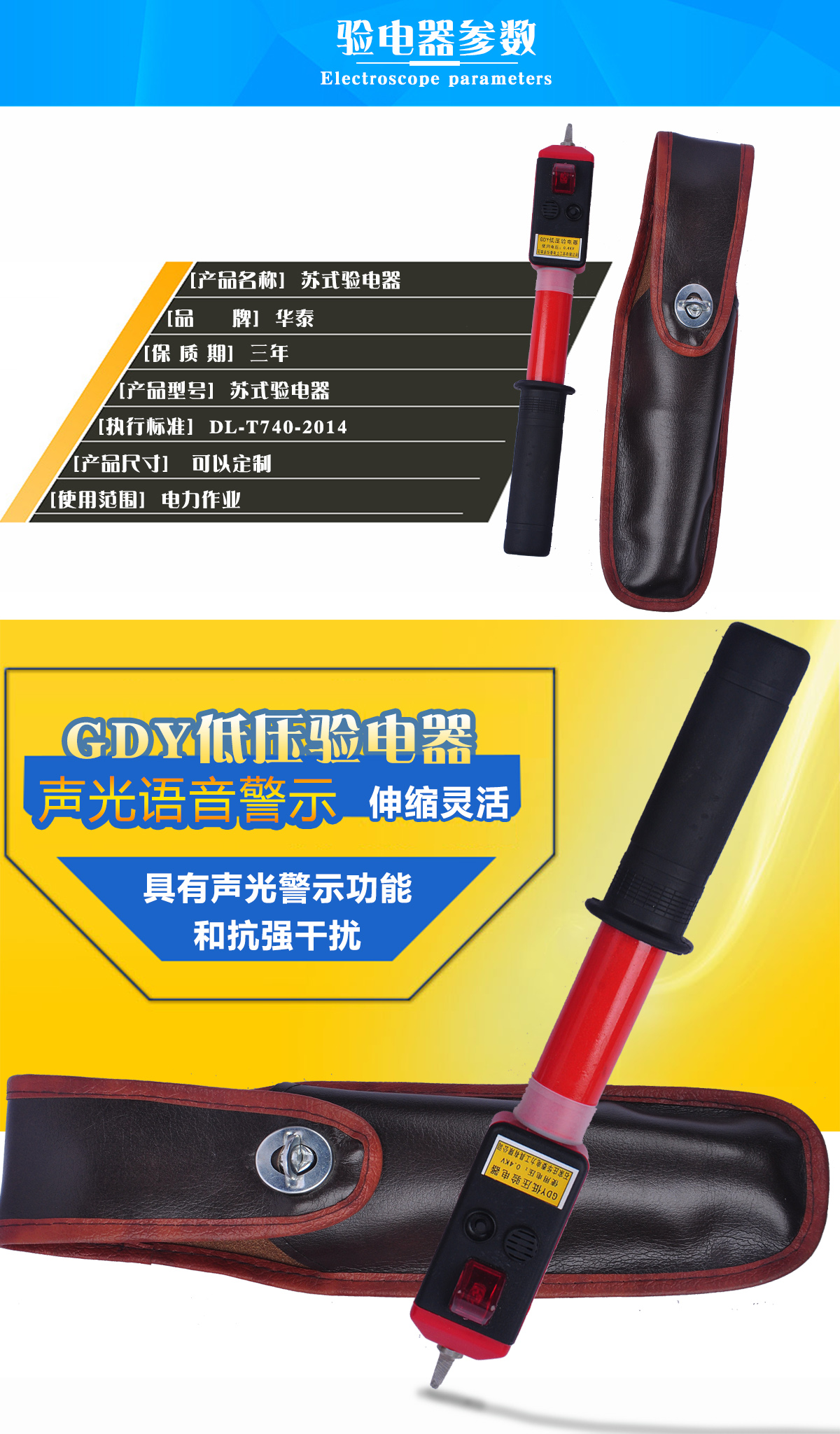 直流驗電器 | 750V、1000V、1500V | 支 | 根據客戶需要,絕緣桿可再加長。 詳情請聯系客服! |